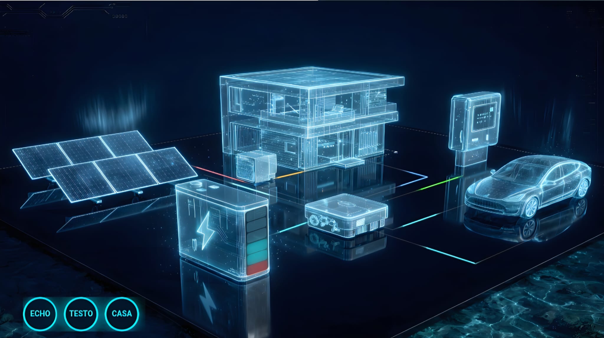 - Scopo: Mostra la produzione solare stimata con un sole olografico ciano e testo stato (tanto/moderato/poco sole).