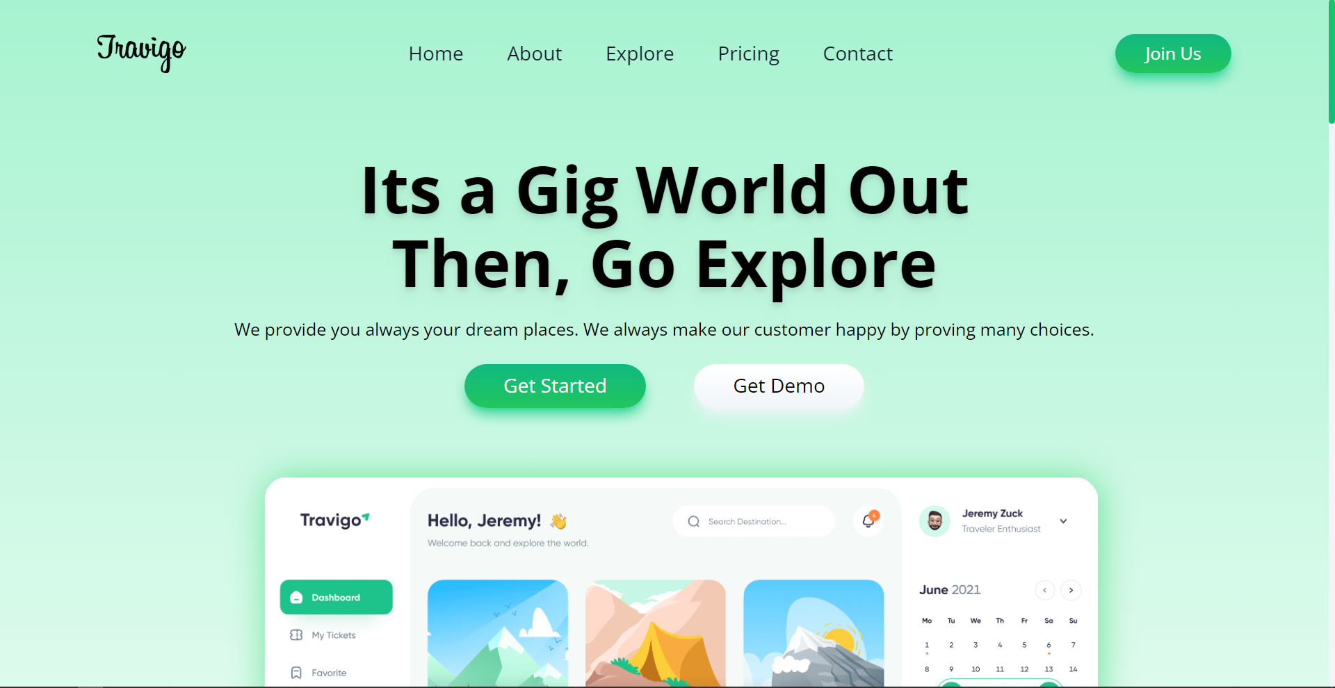 This is a Travel Website Single Page UI Design
