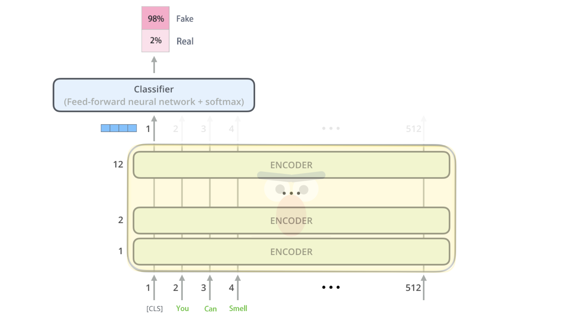 As for the second part, we put the text which we got from the first part into the bert model. The Bert model uses 12 encode layers and finally classifier to get the output.