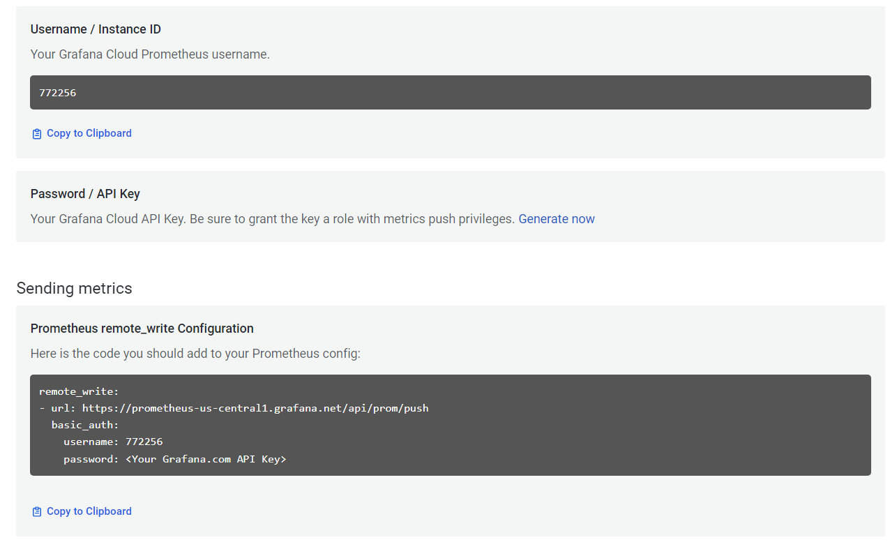 滑到頁面中間,在 Password / API Key 這裡選擇 Generate now,然後下面的 Sending metrics 黑底部分很重要,先留在這個頁面