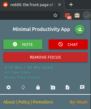 This Extension gives user features like Note Keeping, Todo Notifications, Blocking or Limiting websites & social media usage per day, chat in different journals, magazines websites, and more time management features.