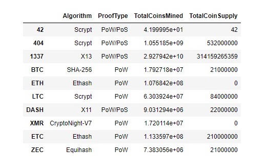 Use unsupervised machine learning techniques to analyze cryptocurrency data.
