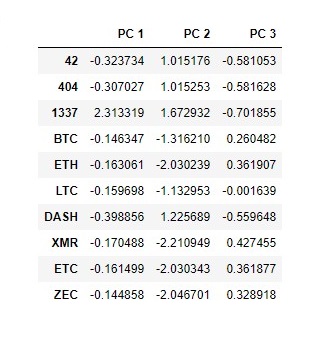 - Create a DataFrame with the three principal components