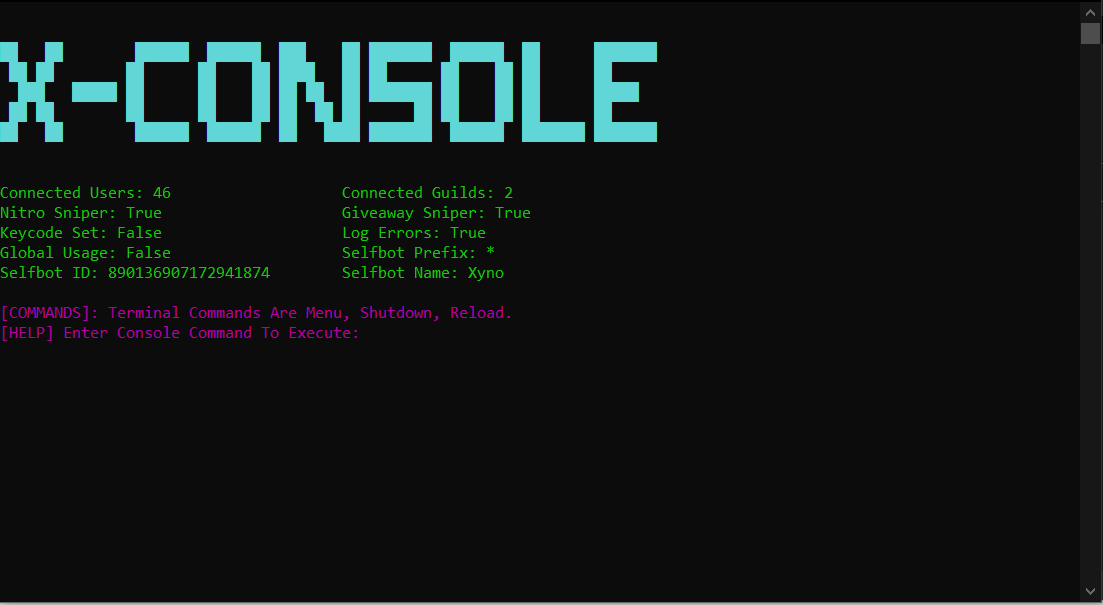 Xyno is a simple but useful selfbot for Discord. It has currently limited useful features but it will be updated in future with more functions & commands. This selfbot is made with discord.py-self, you can see their docs to expand this bot as you want.