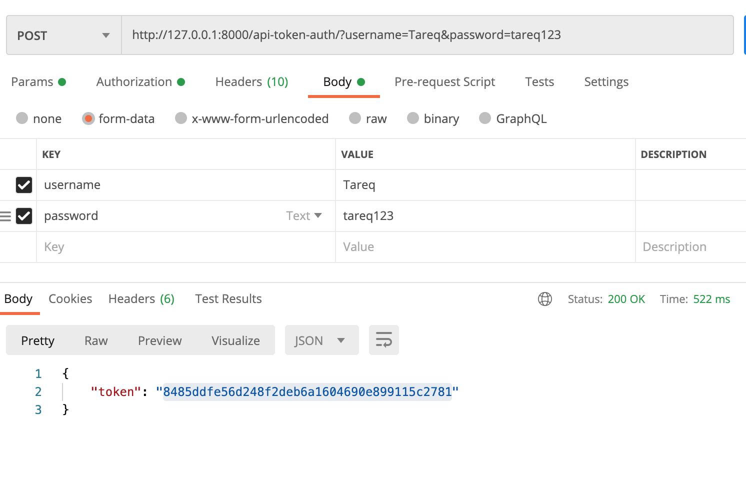 - For getting the user (Tareq) token we need to add some code on testDjango/urls.py