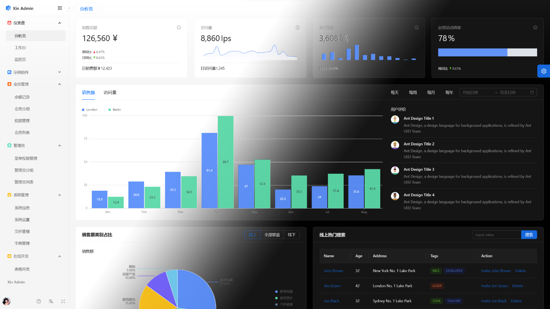 - 仪表盘:提供基于 antv 开箱即用的仪表盘方案,以及演示页面