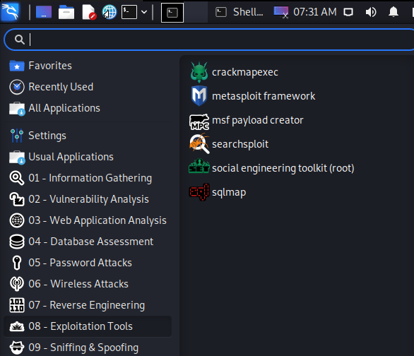 You will notice,in ‘Applications’ menu under ‘Exploitation tools’, ‘social engineering toolkit’ will be preinstalled.