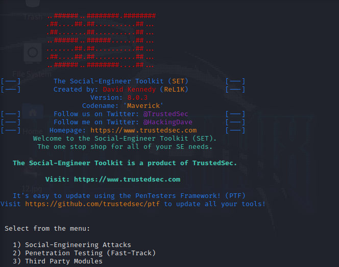 Then press ‘1’ to choose ‘Social-Engineering Attacks’.