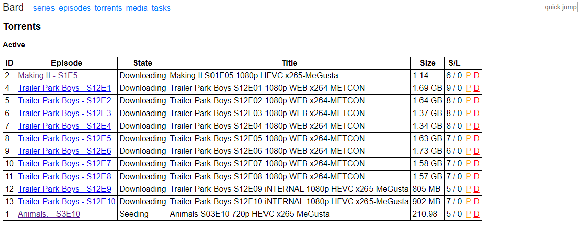 Bard is a lightweight PVR for downloading, extracting and processing TV shows from torrents