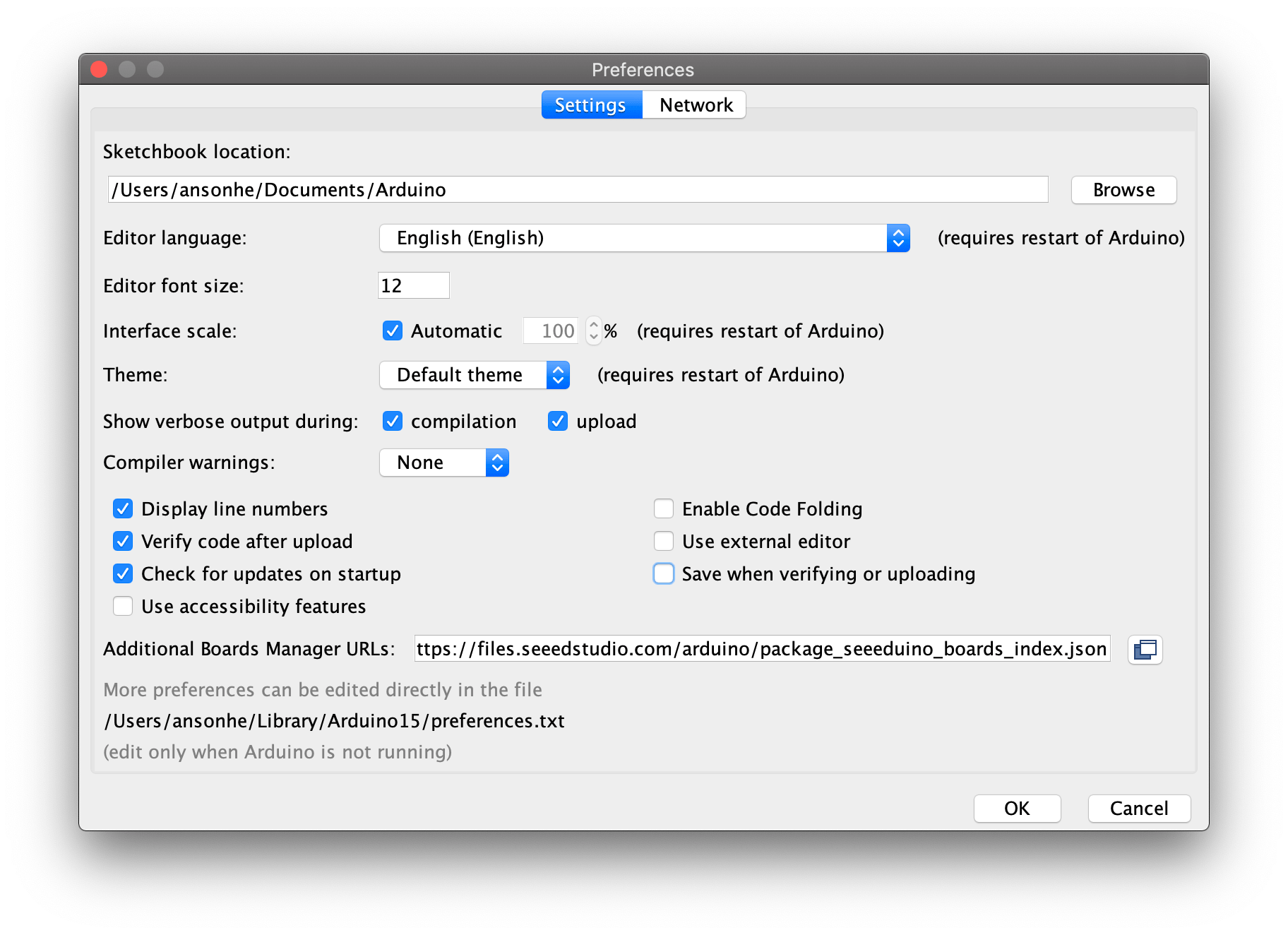 - Open Arduino IDE, go to File -> Preferences