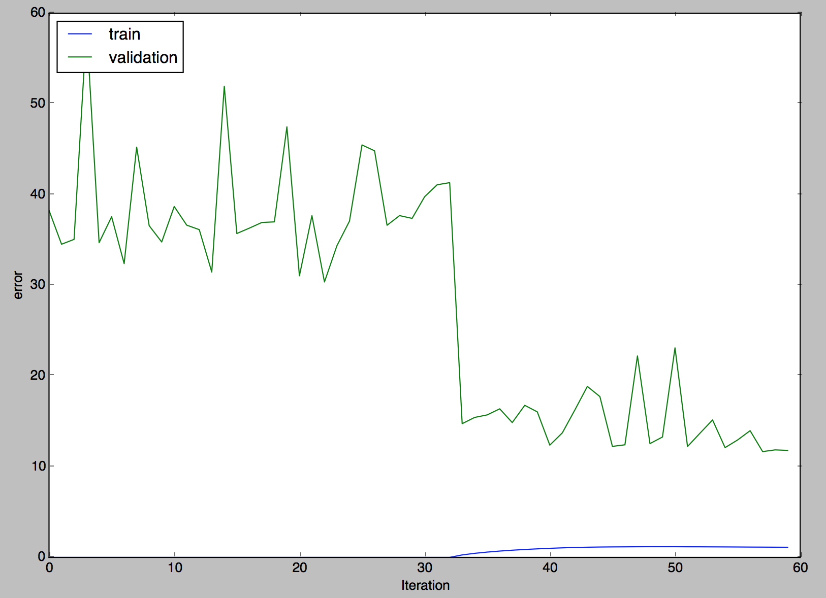 Once you run the train command the neural network will intialize and begin to learn the weights, you should see an output similar to bellow if the --verbose flag is set to true.