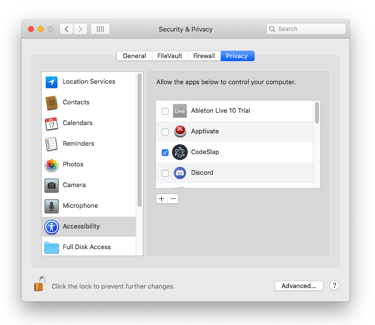 If CodeSlap does not appear in the list, you can add it manually via the + button.