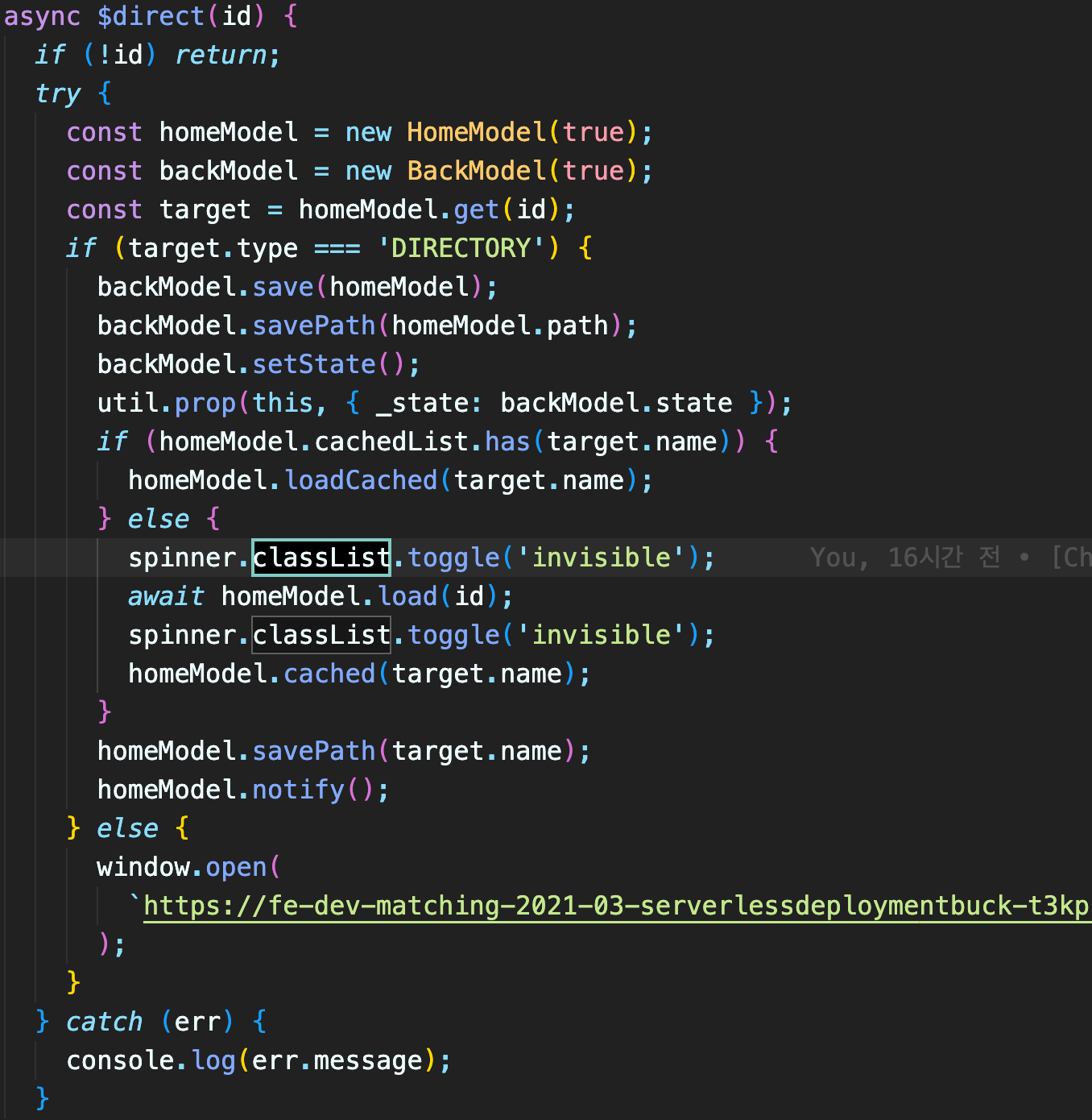 action이 발생하는 부분에 spinner의 로직이 들어가있는 모습을 확인 할 수 있습니다. css에 접근하는 코드는 view에서 작업해야 하기 때문에 잘 분리시키지 못한것을 알 수 있는데 뚜렷한 해결방법을 찾지 못했습니다.
