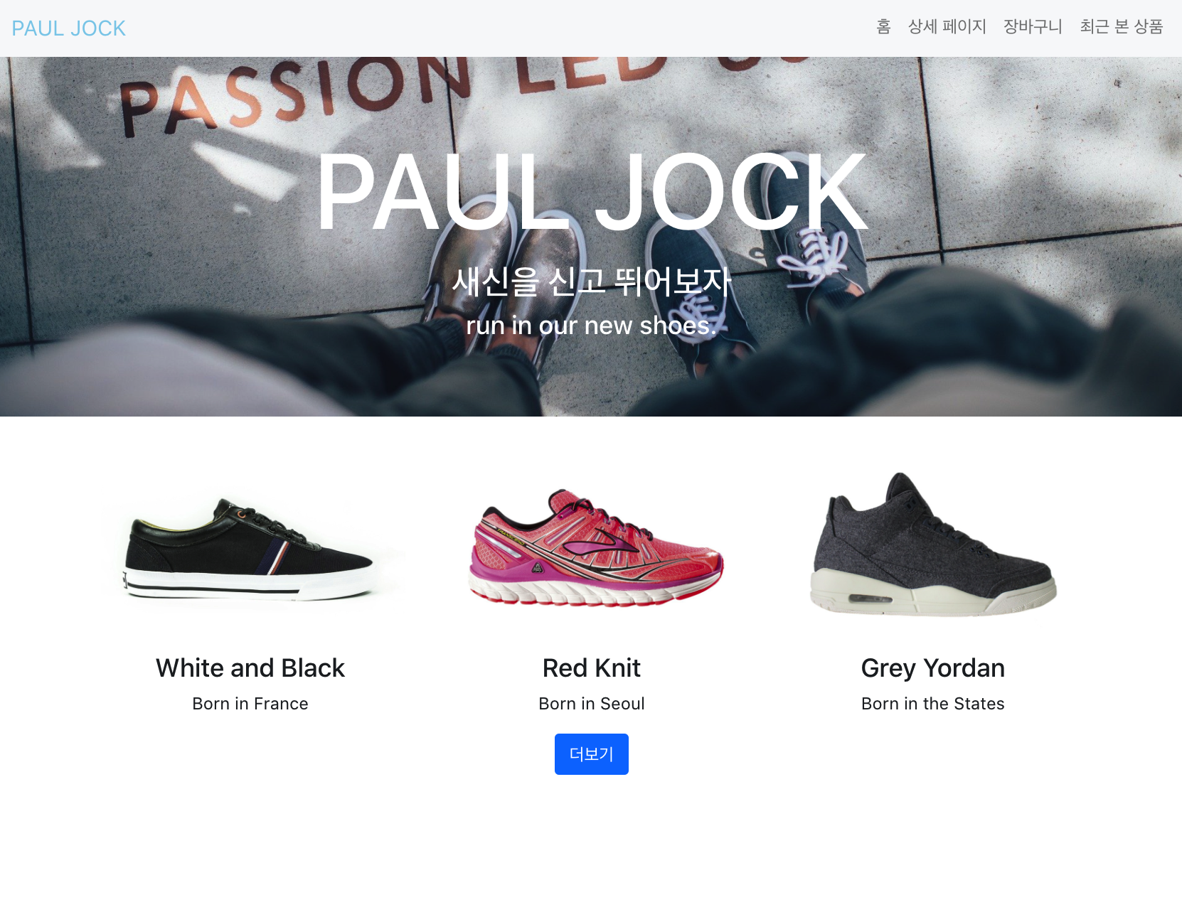 - 더보기 버튼 클릭 후 : 3개가 추가돼서 6개 상품이 보입니다. + 더보기 버튼은 사라집니다.