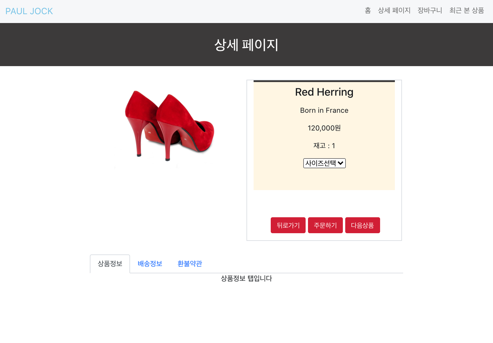 상세페이지 | 클릭한 상품에 대한 상세 정보가 있는 페이지