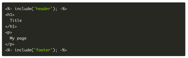 Tired of putting an entire html <head> in every template? You should be. It's not very DRY or easily updatable. It'd be cool if we could just have one header.ejs that has maybe our <head> (or even more) and just include that in each template. Then we have way less repeated code, and if we ever need to make a sitewide change to the head, we could change it in one file instead of every template.