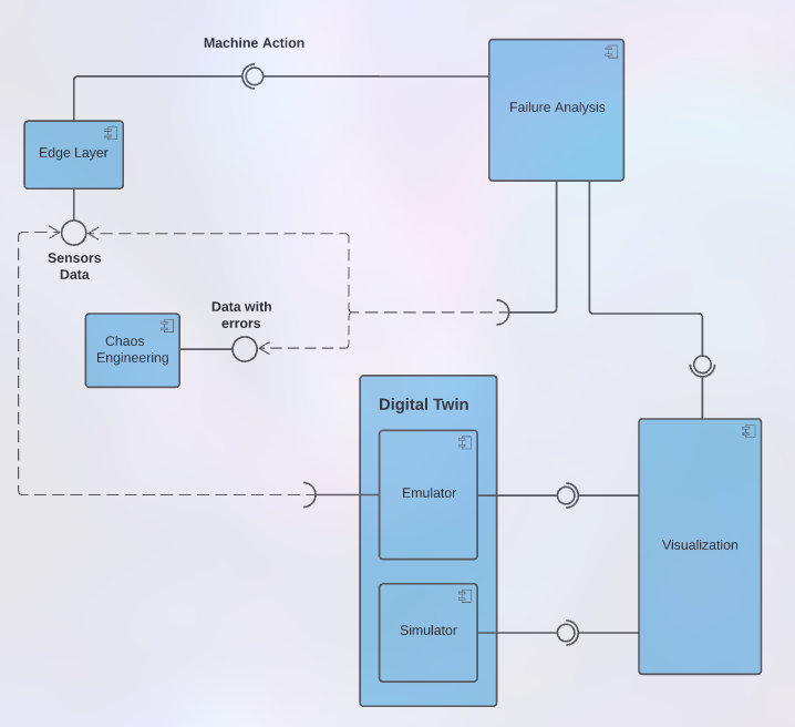 A virtual representation of the factory that spans its lifecycle and is updated from the edge layer. It also simulates how the factory should work if perfect conditions were met.