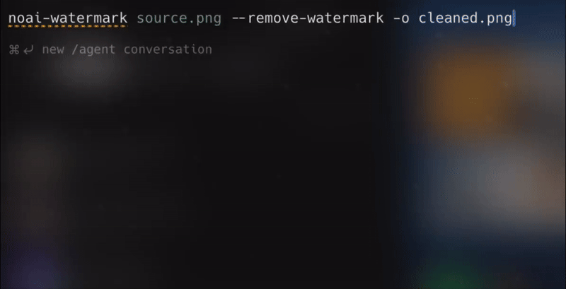 noai-watermark source.png --strength 0.04 --steps 50 -o cleaned.pngQuick Start