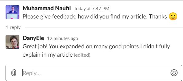 - Participated in Slack by asking questions: