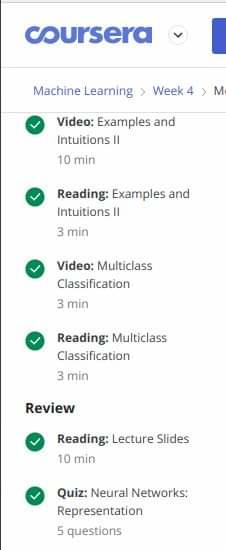 - Was confused in neural networks so took help from Andrew NG and completed the following videos from his famous Machine Learning course and gave his quiz and got 80%.