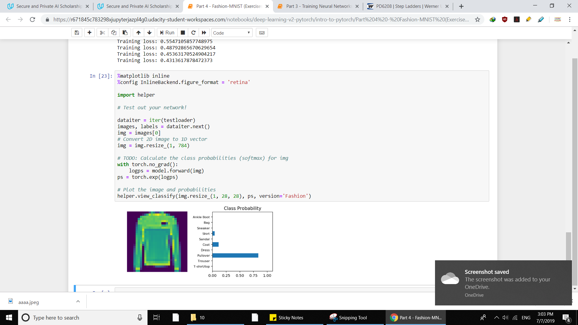 Continued on with "Intro to deep learning with pytorch" course.