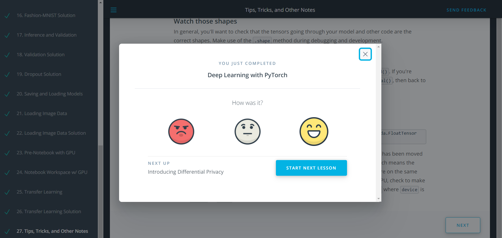 https://lnkd.in/dvkJ2hm - Revised video 12 and 13 of Lesson 2 i.e Intro to Pytorch, which were sounding alien before and got amazed how coming back to the same lecture after few days, meanwhile youtubing and googling about Back propagation, loss functions and gradient descent, strengthened my concepts and I easily learned the concepts of video 12 and 13 without pausing in between.