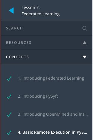 - Loved the concept of Federated learning. Too excited to do project on it. Watched first four video of this lesson.