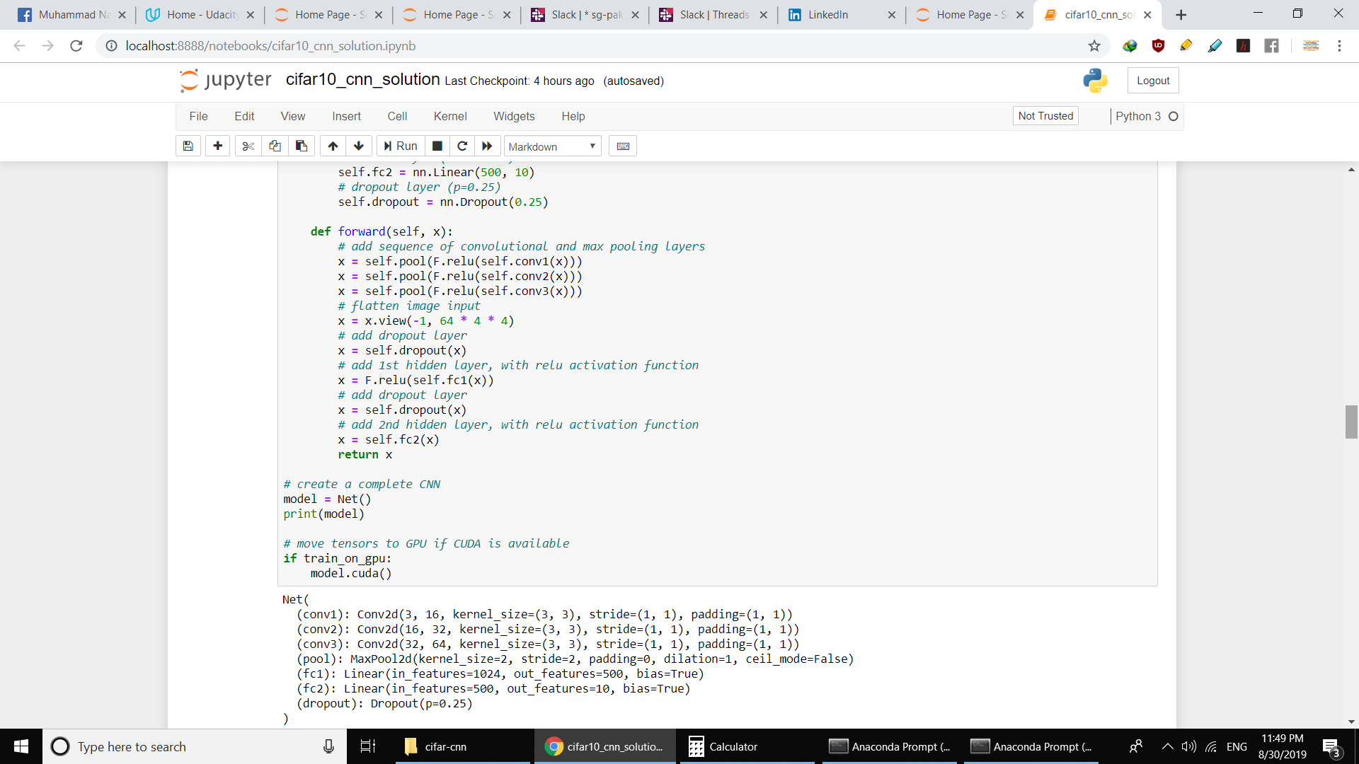 - Learned how to code CNNs in course "Intro to deep learning with Pytorch"