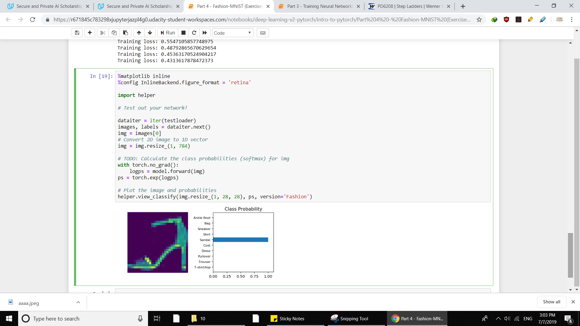 - Built and trained a neural network for Fashion MNIST dataset.