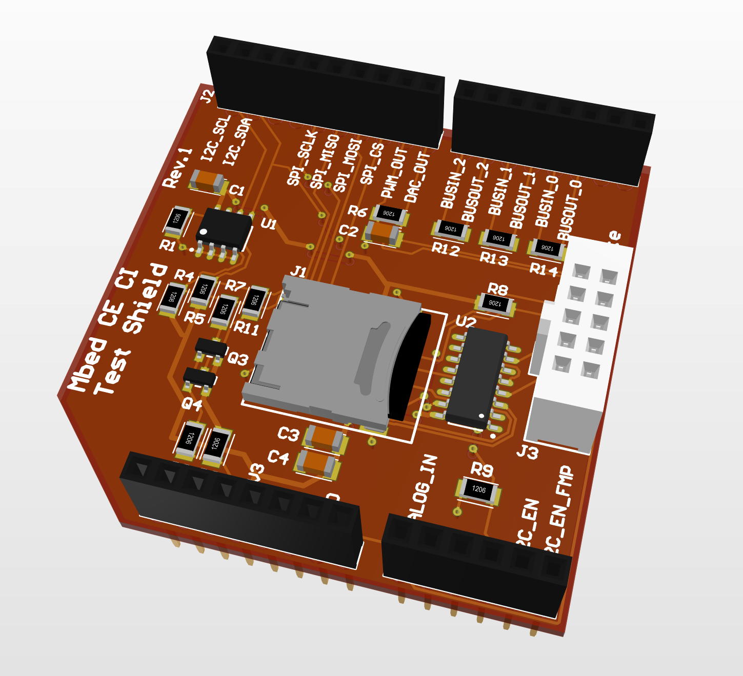 This project is an updated version of the Mbed CI Test Shield, a project created by the ARM Mbed team several years ago. Essentially, the CI Test Shield is a single board that can use and exercise as many different hardware interfaces of an MCU as possible. When combined with appropriate test cases and scripts, it should allow a CI job to exercise and test nearly all major functionality of the Mbed board.