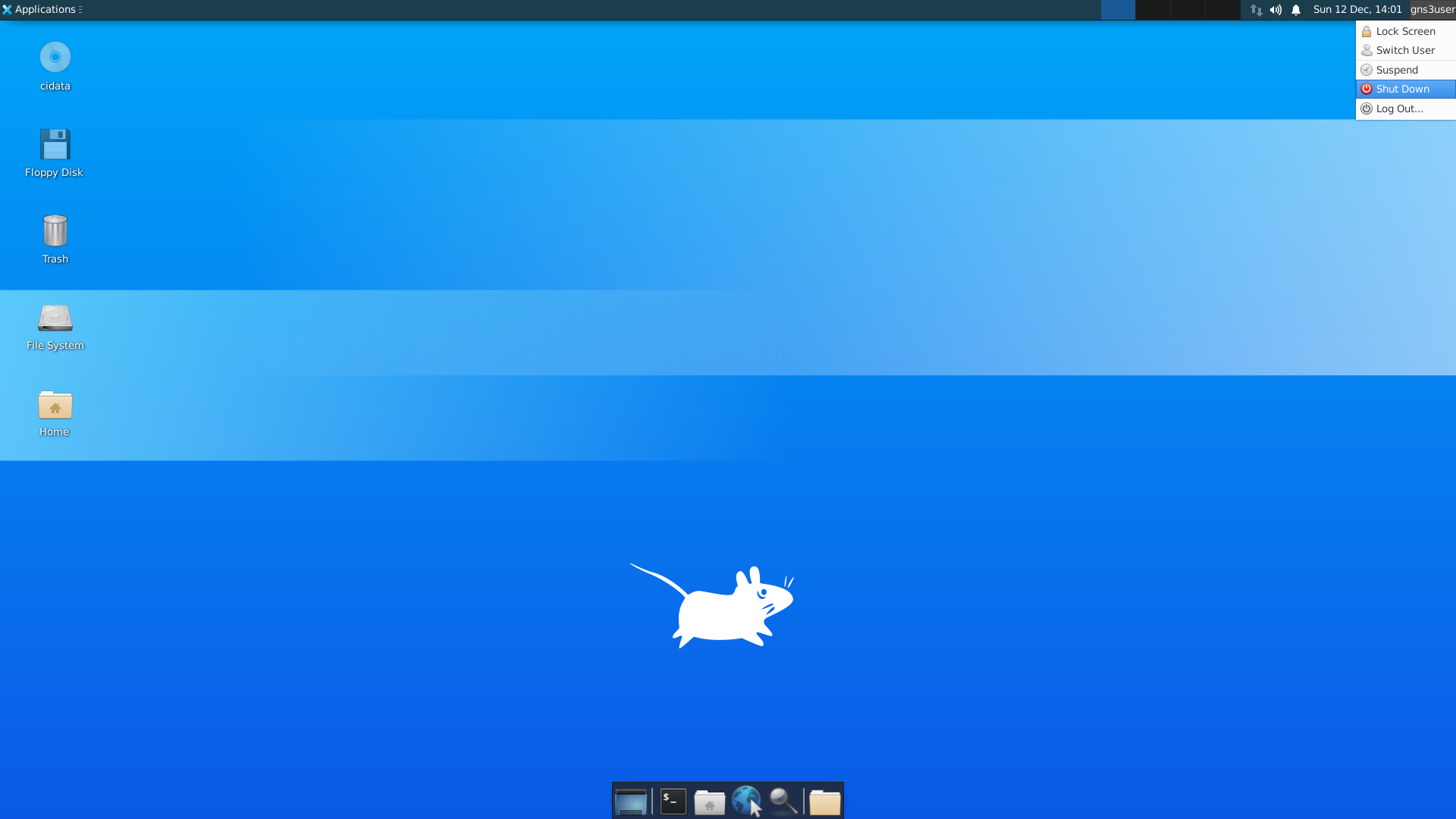 After you've logged into Apache Guacamole and the VM itself, you can start using it like a normal machine with Ubuntu. The VM comes preinstalled with the XFCE4 desktop environment, GNS3, Wireshark and Firefox.