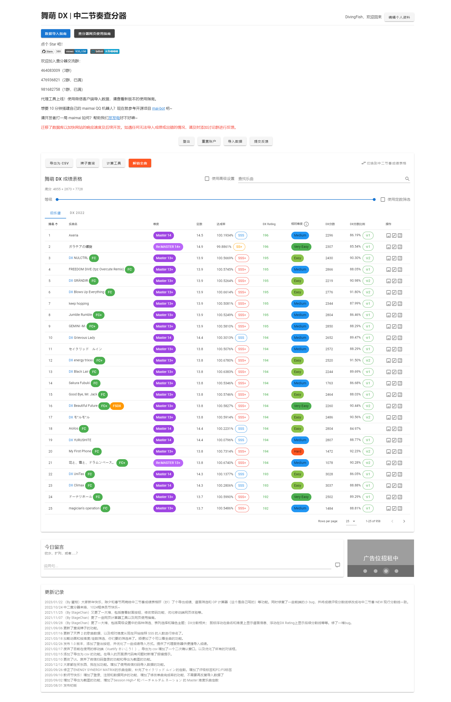 本查分器仅用于推分指导用途,不保证歌曲定数、DX Rating、难度 100% 准确。