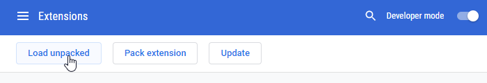 - Click on the "Load unpacked" button and select the directory where the built extension is placed.