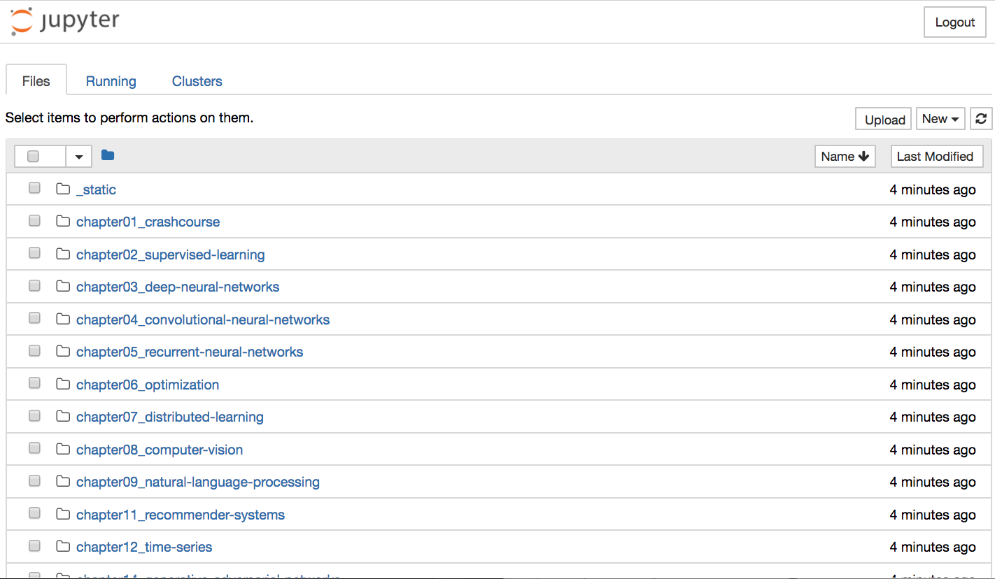 cd $HOME && git clone https://github.com/zackchase/mxnet-the-straight-dope.gitNow, you'll see a folder called mxnet-the-straight-dope within your home directory. Let's switch to this directory and initialize a daemon of Jupyter Notebook from there: