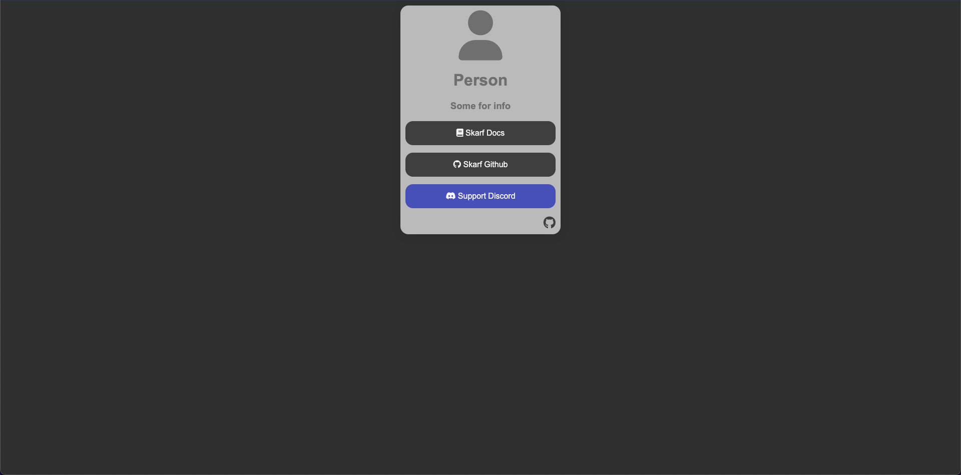 image: "wooferz/skarf:master"After running, 2 new directories should pop up static/ and config/ it is important to copy the config/config.yml into the config/ directory and restarting the container so skarf can configure itself and if you want your own images, you need to put files into static/ and it can be accessed from the config with under the static/ url.